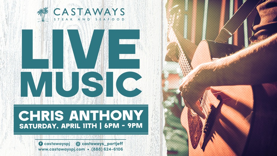 Live music with Chris Anthony at Castaways on Saturday, April 11 from 6PM to 9PM.